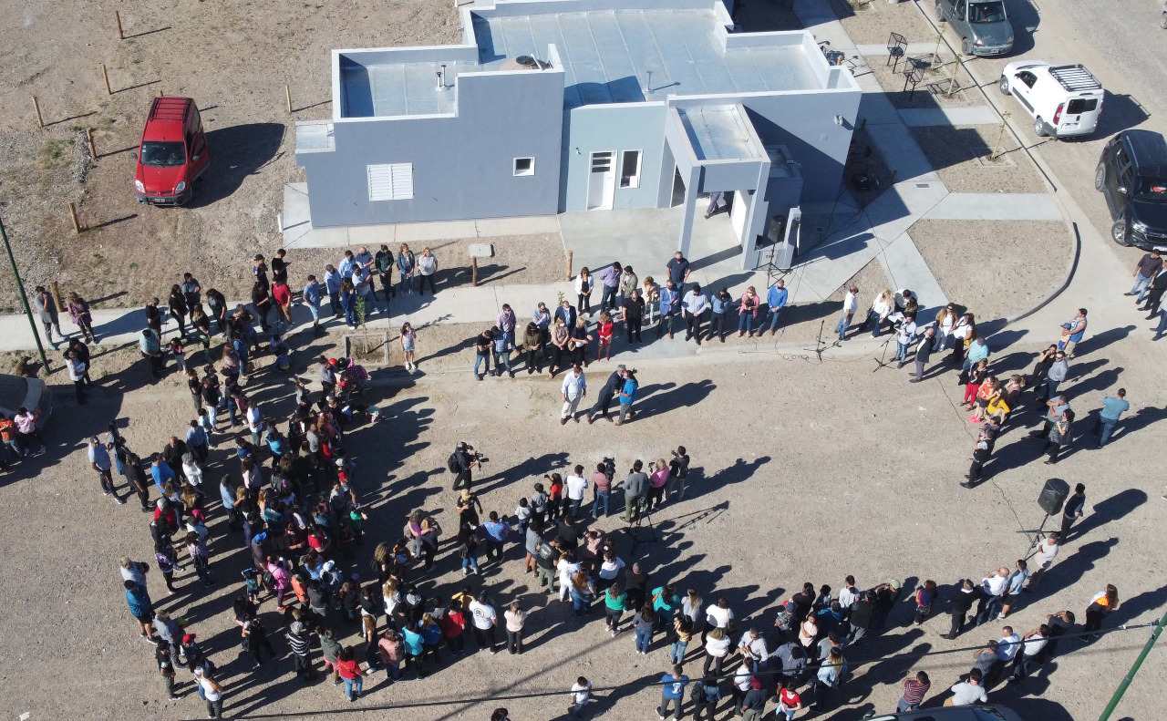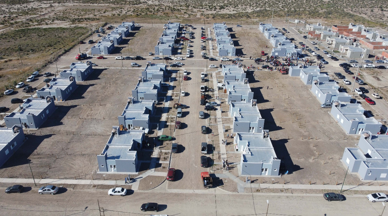 Arcioni detalló que “hoy estamos entregando 64 viviendas, y ya entregamos más de 80 viviendas en Rawson, con 110 viviendas que hoy están en ejecución, más otras tantas que vamos a estar proyectando, y licitando”.