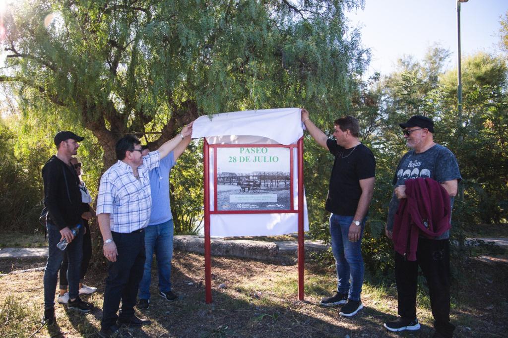 Durante la realización de la “Muni en tu Barrio”, y tras la habilitación del Registro, “nos trasladamos a los vestigios del puente de madera y se colocó la cartelería con la denominación que lleva esta costanera, Paseo 28 de Julio, del Concejo Deliberante de 1922”.