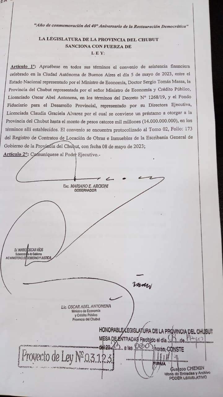 Se trata de el convenio Programa de Asistencia Financiera suscripto entre el Estado Nacional y el Gobiernose la Provincia del Chubut.