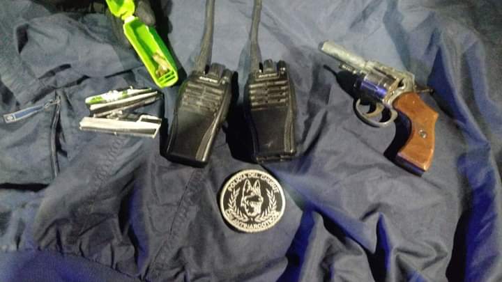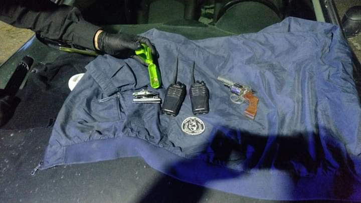 Dos equipos de comunicacion ht boafeng un pasamontaña,binoculares, un revolver calibre 22 con 06 cartuchos a bala en sus albeolos.