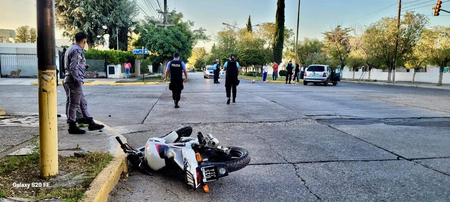 La colisión entre un automóvil y una motocicleta se produjo el día de ayer a las 19 30 horas en Avenida 9 de Julio y calle Roca, cuando según testigos el conductor del rodado menor, que posteriormente resultó con fracturas de costillas internado y en terapia intensiva, no observó que del sector de la calle Roca ya había habilitado el semáforo en verde para el paso de un Chevrolet Corsa, por lo que lamentablemente el motociclista impactó en la lateral del Chevrolet resultando con heridas importantes.