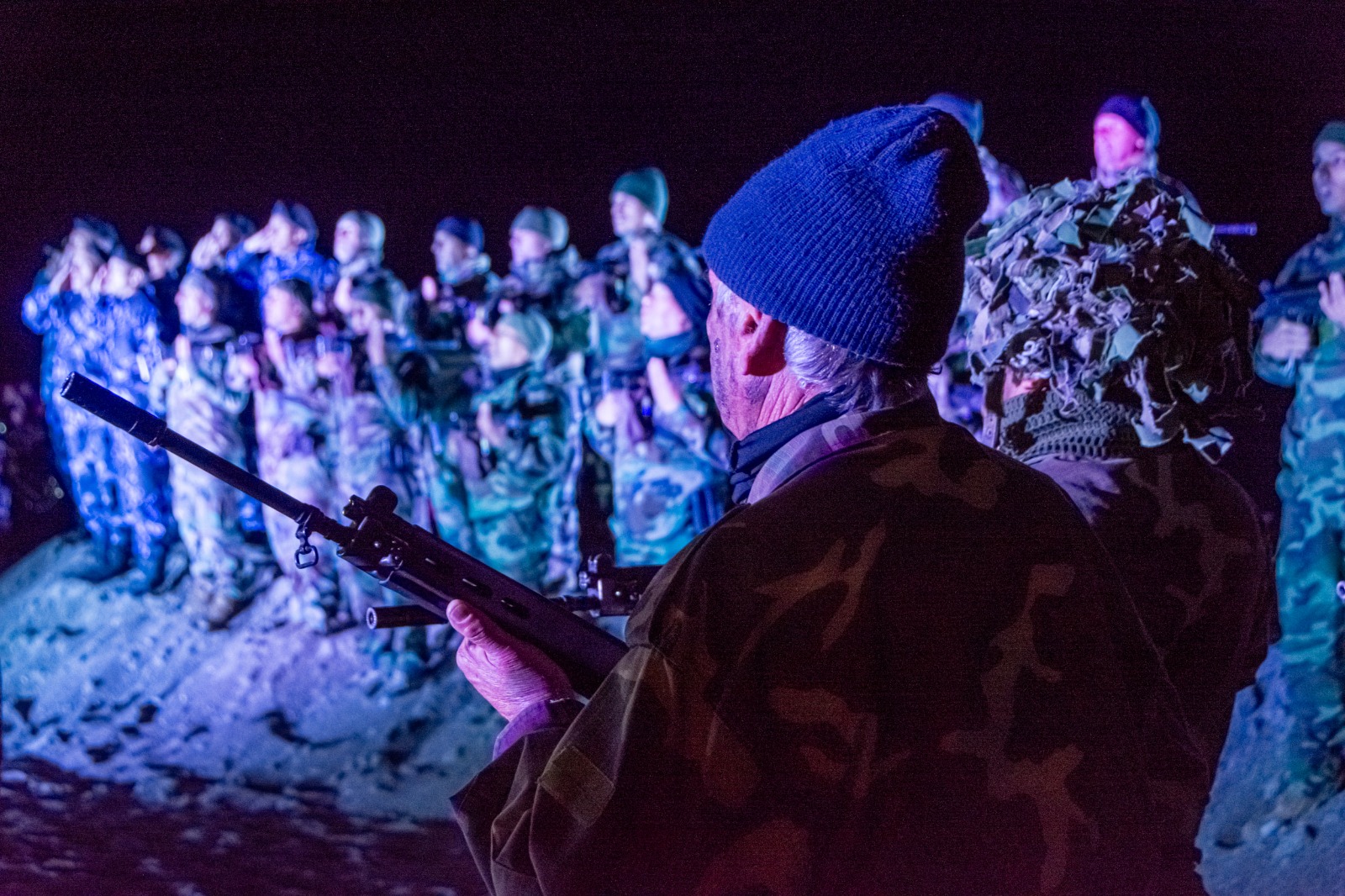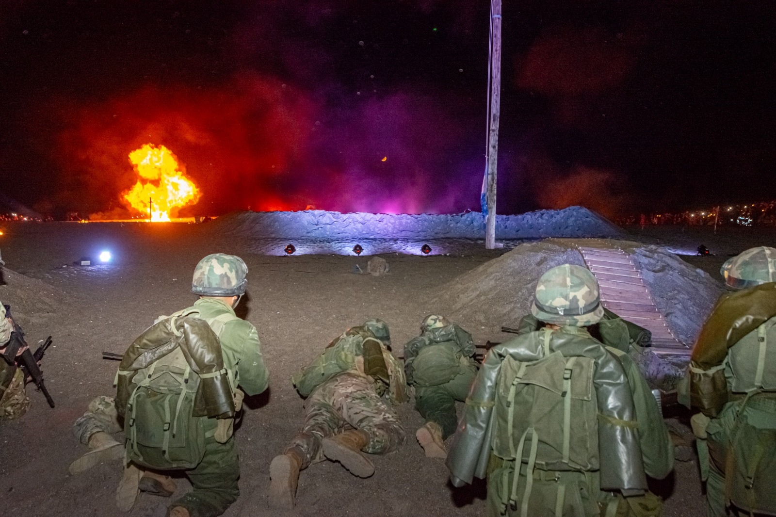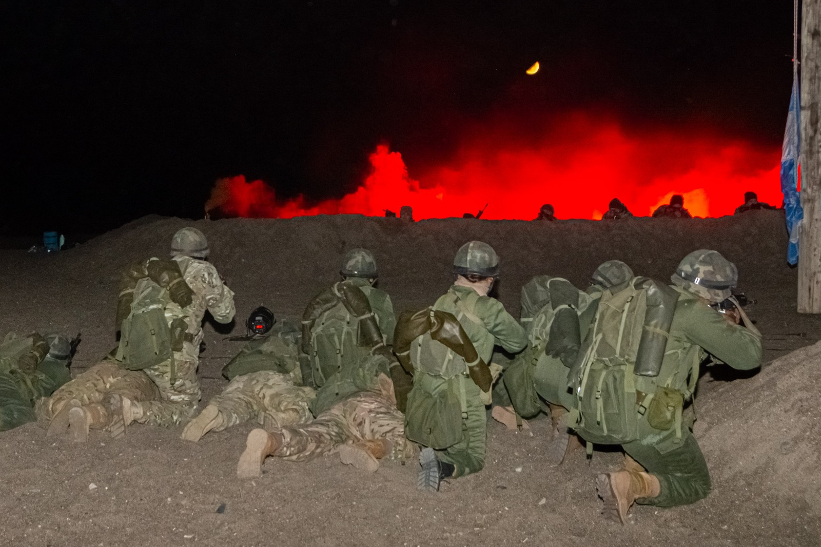 Esta tercera recreación -anteriormente se realizaron “Operación Rosario” y “Operación Georgias”- le dio cierre a la Vigilia por Malvinas organizada en conjunto entre el Centro de excombatientes y la Municipalidad de Rawson, y que incluyó la presentación de números artísticos en el Anfiteatro y la Muestra Fotográfica Huellas en la Casa Estudiantil.
